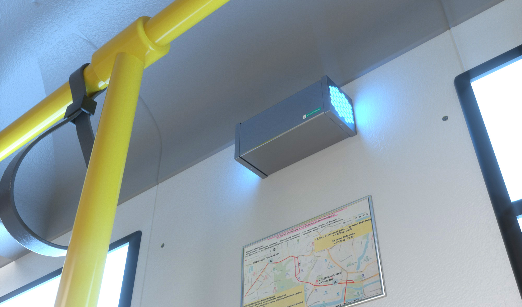 Общественный и личный транспорт - это ограниченные, плохо проветриваемые пространства, поэтому в них требуется постоянная работа облучателя-рециркулятора, который в реальном времени уничтожает взвешенные в воздухе микрокапли, возникающие при чихании, кашле и даже просто дыхании пассажиров и водителей